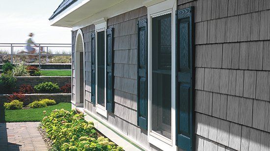 House siding from Quality Siding complements its exterior wall finishing system with essential architectural accessories. Our window accent trims and decorative corner systems are made to match the beauty, quality, and performance of our laser-cut, contour-fit house siding. Our architectural accessories complete the home with the look of genuine wood trim and a lifetime of maintenance-free satisfaction. In addition, Quality Siding can be installed with vinyl shutters, trim, gable vents, door surrounds, window mantles, crown moldings, shakes, and scallops. These exterior products can be used individually to enhance and beautify a particular aspect of a home, or be combined to create a look that is uniquely your own.
